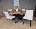De set biedt niet alleen een sfeervolle plek om samen te eten, maar ook een gevoel van sereniteit en comfort. De ronde vorm van de tafel nodigt uit tot gezellig tafelen en bevordert het contact tussen de zitplaatsen. Dankzij de stevige constructie en de hoogwaardige stoffen blijft deze set jarenlang een stijlvolle keuze in elk interieur.