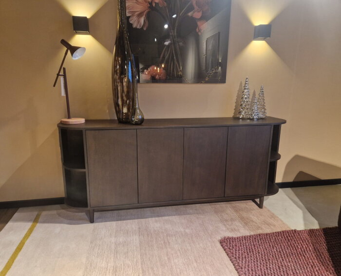 Achter de vier deuren biedt dit dressoir volop opbergruimte voor servies, woonaccessoires, papierwerk of andere spullen die je netjes uit het zicht wilt houden. De open vakken aan weerszijden zijn ideaal voor decoratieve items zoals boeken, vazen of kunstobjecten. Dankzij de breedte van 200 cm is Milla perfect als statement meubel in de woonkamer, eetkamer of een ruime hal.
