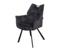 De Felien is bekleed met Adore-stof, een fluweelachtige stof met een subtiele glans en rijke kleurnuances. Deze bekleding voelt zacht aan, is slijtvast en geeft de stoel een luxueuze uitstraling. Het kuipvormige design met geïntegreerde armleuningen en decoratieve stiknaden maakt de stoel niet alleen stijlvol, maar ook modern en uitnodigend. Het zwarte metalen onderstel zorgt voor stabiliteit en een stoere touch.