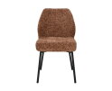 De Tess stoel heeft een elegante vorm met een licht gebogen rugleuning die de rug goed ondersteunt. De rijke stoffering voelt zacht aan en geeft de stoel een luxe uitstraling. Het speelse weefpatroon in de bekleding zorgt voor een levendig effect dat zowel bij een moderne, industriële als een warme, landelijke inrichting past. De zwarte, slanke poten vormen een stijlvol contrast met de stof en zorgen voor een stabiele basis.
