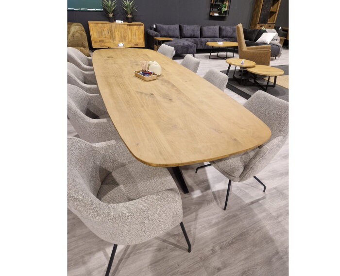 De Meubelplaats eettafel 'Colorado' combineert Deense elegantie met een robuuste constructie. Beschikbaar in diverse afmetingen: 160, 180, 200, 220, 240, 260, 280 & 300 cm. Het mangohouten blad heeft een natuurlijke afwerking en rust op een stevig metalen onderstel.