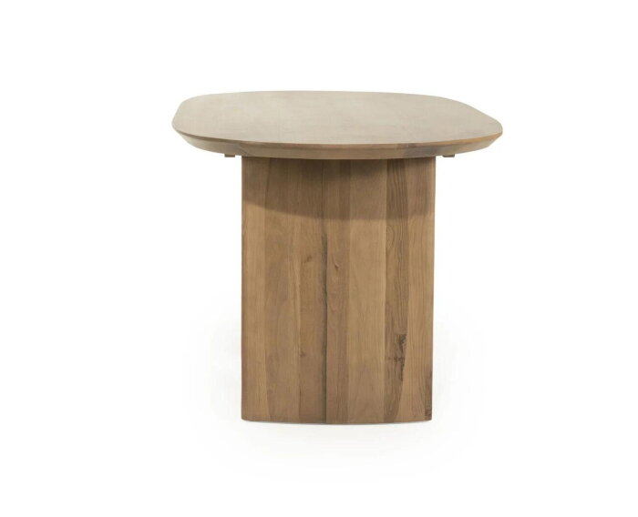 Eettafel Dex is gemaakt van zorgvuldig geselecteerd eikenhout in combinatie met eikenfineer, wat zorgt voor een natuurlijke uitstraling en een duurzaam oppervlak. Het tafelblad van 4 cm dik rust op stevige, afgeronde zuilpoten die zorgen voor stabiliteit en een unieke vormgeving. De zachte lijnen maken deze tafel toegankelijk en warm, terwijl het hoogwaardige houtwerk garant staat voor jarenlang gebruiksgemak.
