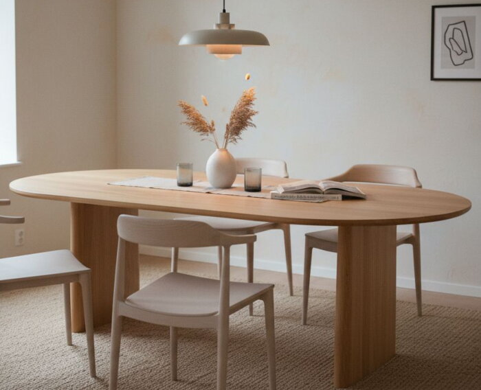 Eettafel Lazlo is een stijlvolle en tijdloze blikvanger waarin rust, natuurlijke materialen en modern design samenkomen. Het ovale blad en de zachte belijning zorgen voor een uitnodigende sfeer, terwijl het lichte eikenhout warmte en verfijning toevoegt aan de eetruimte. Lazlo is ontworpen voor lange diners, dagelijkse momenten en alles daartussenin.
