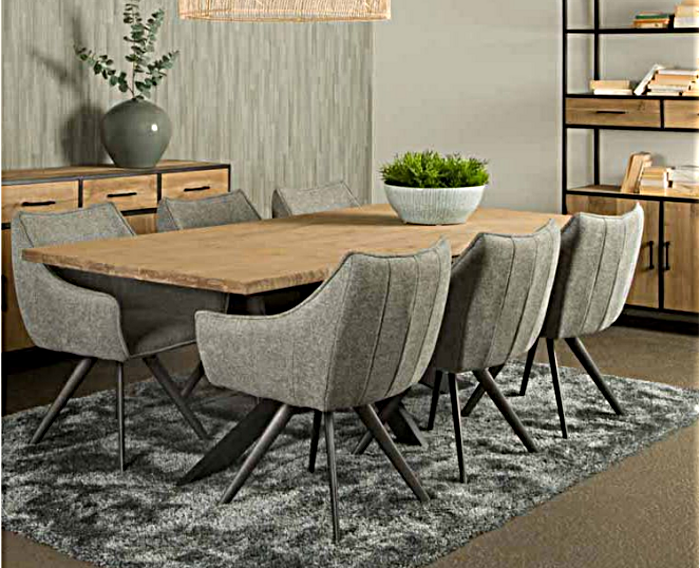 De Luna eetkamertafel 240 cm brengt rust, ruimte en karakter samen in één krachtig ontwerp. Het royale tafelblad met warm eikenfineer vormt een sfeervol middelpunt in de eetkamer, terwijl het metalen onderstel zorgt voor een stoer en eigentijds contrast. Ideaal voor lange diners, gezellige avonden en een interieur waarin natuurlijke materialen en strak design samenkomen.