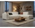 Hoekbank Cosy heeft een modern, zacht design met afgeronde lijnen en volle kussens. De stof Egon 26 heeft een fijne structuur en voelt aangenaam aan, terwijl de beige kleur zorgt voor een rustige en warme uitstraling. De lage, brede vormgeving versterkt het loungegevoel en maakt de bank geschikt voor diverse interieurstijlen.