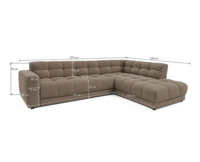 Hoekbank Cosy is ontworpen voor ontspannen wonen met hoog zitcomfort als uitgangspunt. De royale afmetingen, zachte vormen en de warme taupekleurige stof geven de bank een uitnodigende en eigentijdse uitstraling, terwijl de doordachte opbouw zorgt voor comfortabele ondersteuning bij dagelijks gebruik. Met de chaise longue aan de rechterzijde is dit een ideale bank om heerlijk tot rust te komen.