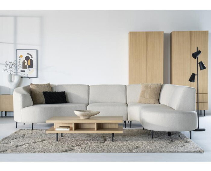 Modulaire hoekbank Diane – verrassend luchtig en verleidelijk elegant Hoekbank Diane van SEVN combineert verfijnd design met speelse rondingen. De zachte, organische vormen geven deze bank een uitnodigende uitstraling, terwijl de hoge, slanke poten zorgen voor een luchtig en elegant geheel. In de stof Leaf Natural oogt Diane warm en tijdloos, perfect passend binnen een Scandinavisch interieur. Een echte eyecatcher die elegantie en comfort moeiteloos samenbrengt.