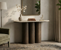 De sidetable Piazze 120 cm is een elegante blikvanger die luxe en functionaliteit moeiteloos combineert. Het verfijnde marmeren blad in een warme beige tint rust op robuuste, donker afgewerkte poten en creëert een stijlvol contrast dat perfect tot zijn recht komt in de hal, woonkamer of achter de bank. Een subtiel statement met een hoogwaardige uitstraling.