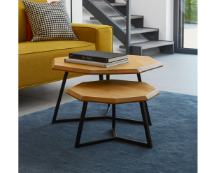 - Set van houten salontafels: multifunctioneel en flexibel, ideaal voor kleinere ruimtes.