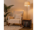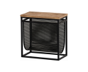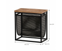 Dit rek biedt veelzijdige opbergmogelijkheden. Het mandje is ideaal voor het bewaren van tijdschriften, boeken en kranten, terwijl het houten blad ruimte biedt voor decoratieve items zoals een plant of fotolijstje. Het compacte formaat maakt het gemakkelijk te plaatsen in kleinere ruimtes of als stijlvol element in grotere interieurs.